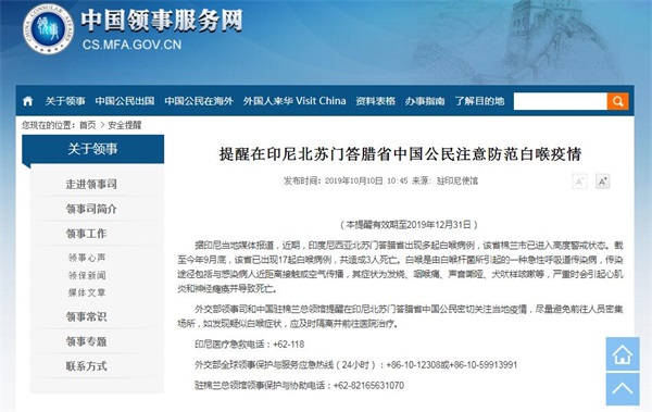 印尼現白喉疫情致3人死亡,外交部提醒防範_