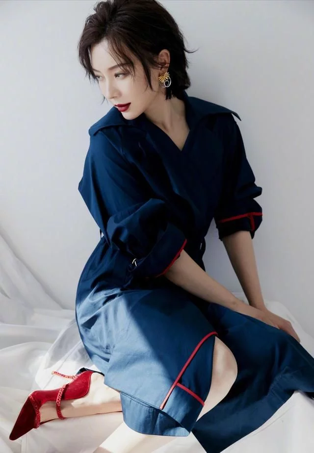 藏青色風衣裙高級有氣質 有不少女明星人到中年也從未放棄少女風的穿搭,而43歲的陳…