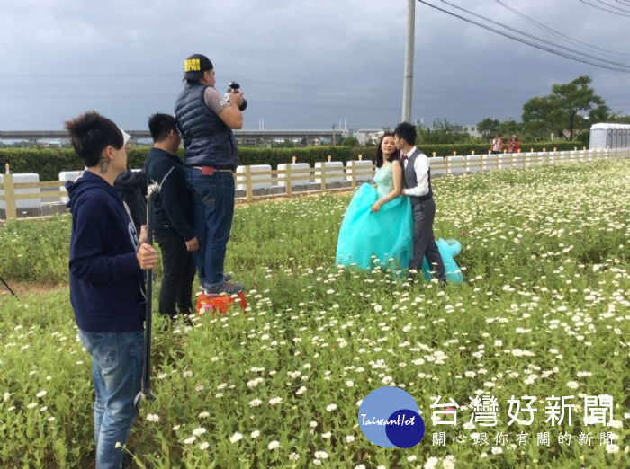 新人至漸層花海拍攝婚紗。 桃園花彩節在28日正式在楊梅登場,今年將有七個花區接續…