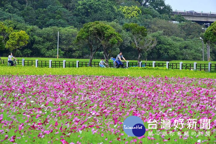 漫遊花彩節新亮點 龍潭花區沿著自行車道綻放_