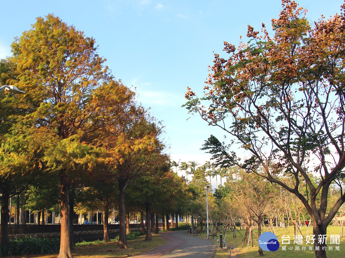 褪去綠衣漸漸轉色的落羽松也開始嶄露芳姿(圖/北市公園處提供) 冷冽寒冬,有別於春…