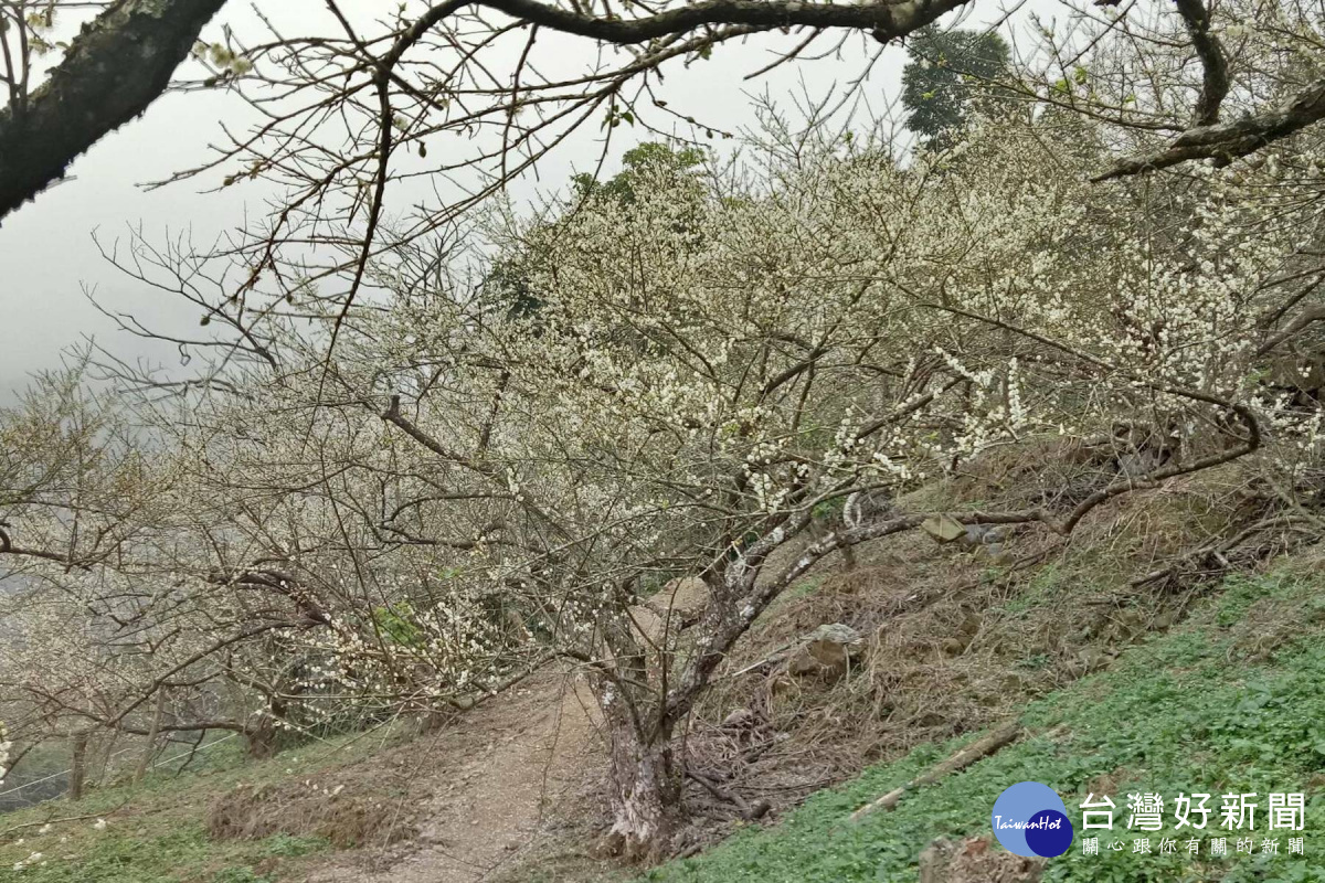 台南楠西山區梅嶺梅花盛開,整座山花開似蒙上一層白雪。(圖/返老還童南瀛區教練黃淑…