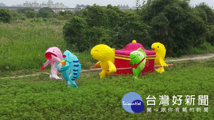 藝術裝置「雙喜臨門 鯽魚娶親」。 桃園花彩節10月29日(星期六)率先在楊梅登場…