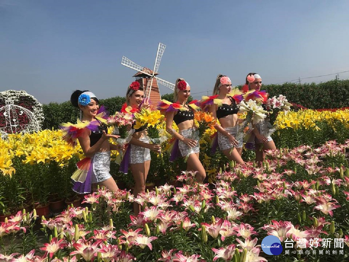 后里中社花市在溫和天氣中,推出百合花系列,烏克蘭五位舞者精彩舞技與花爭艷,讓遊客…