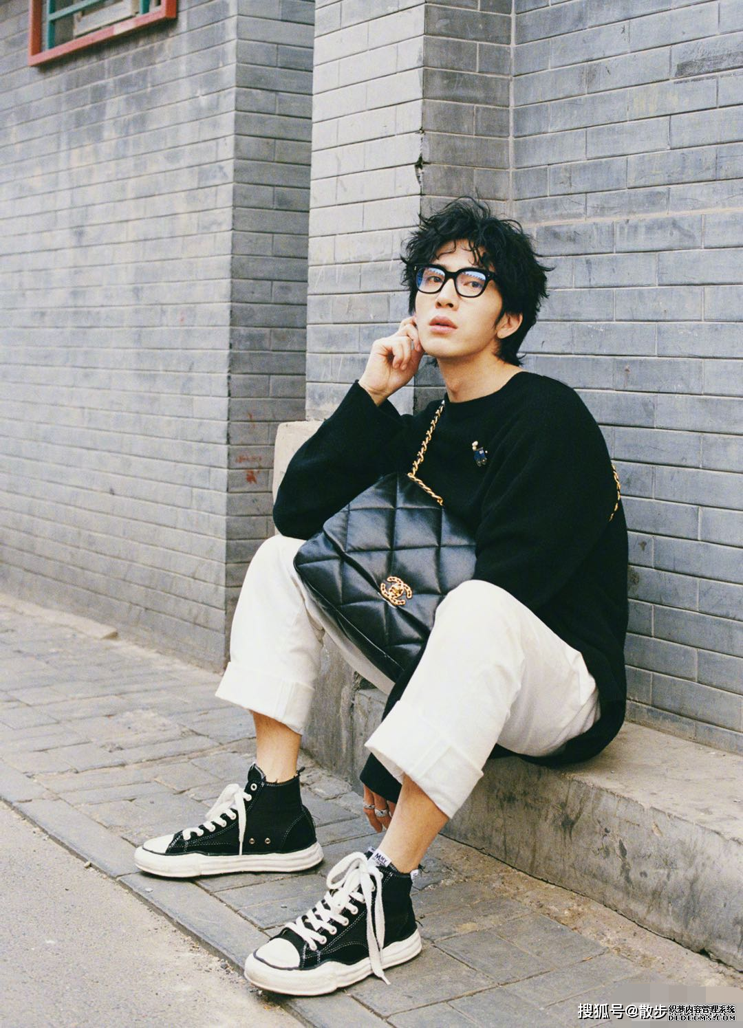 穿黑色毛衫搭白色褲子+鏈條包包 井柏然,不僅顏值在線,而且腦洞大開的寶藏男孩也很…