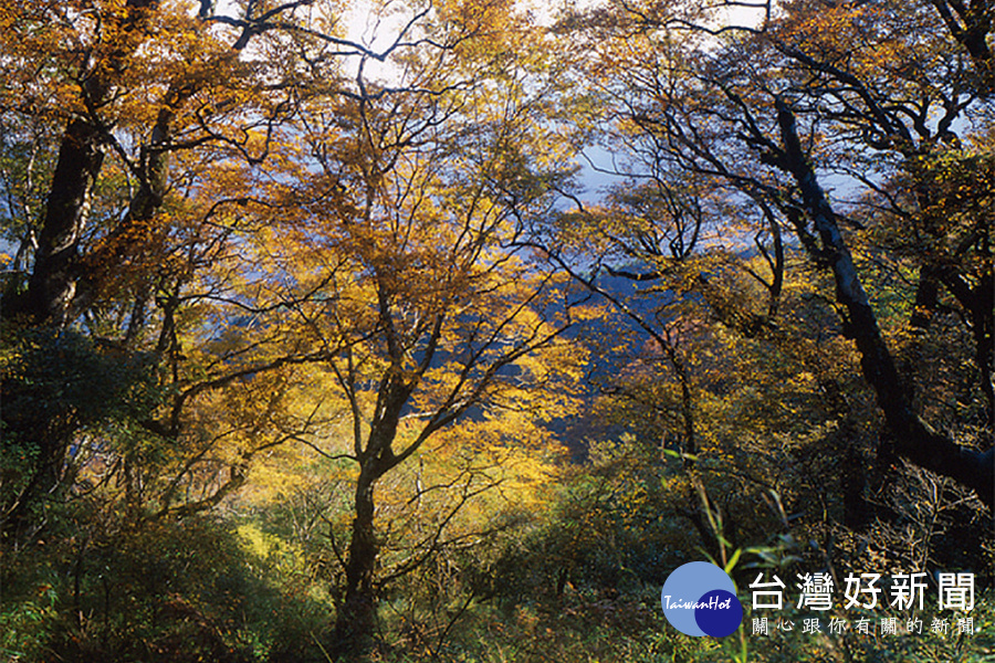 秋天的台灣山毛櫸綠葉轉金黃(圖/羅東林管處提供) 因應台灣山毛櫸步道旅遊旺季的到…