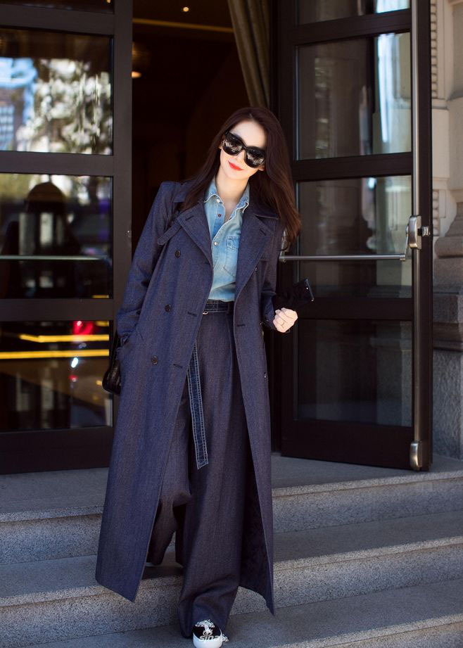 戚薇襯衫+闊腿褲氣質十足!