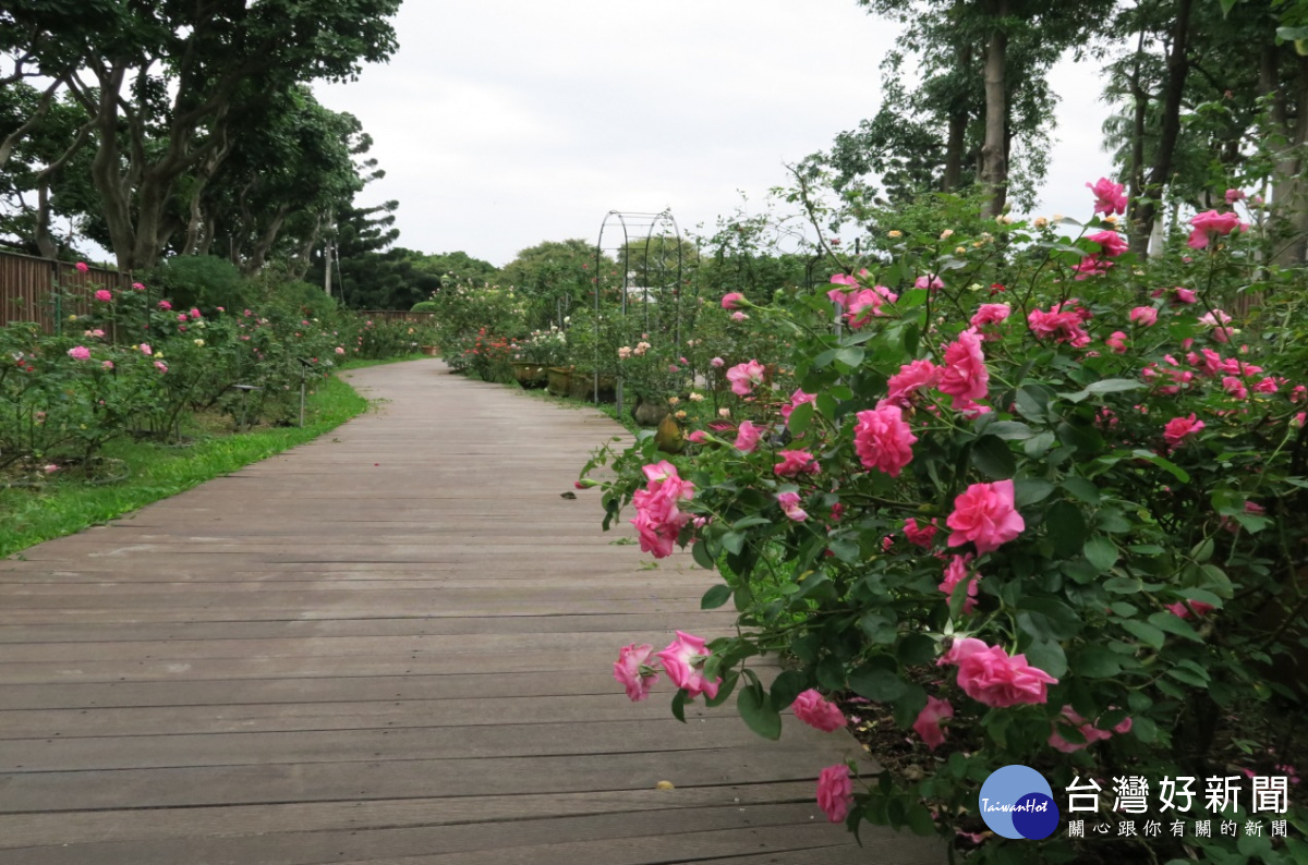 現代玫瑰園區內新設置寬闊的木棧道,讓民眾能更便利的在花叢間賞玩、拍攝。 位於花博…