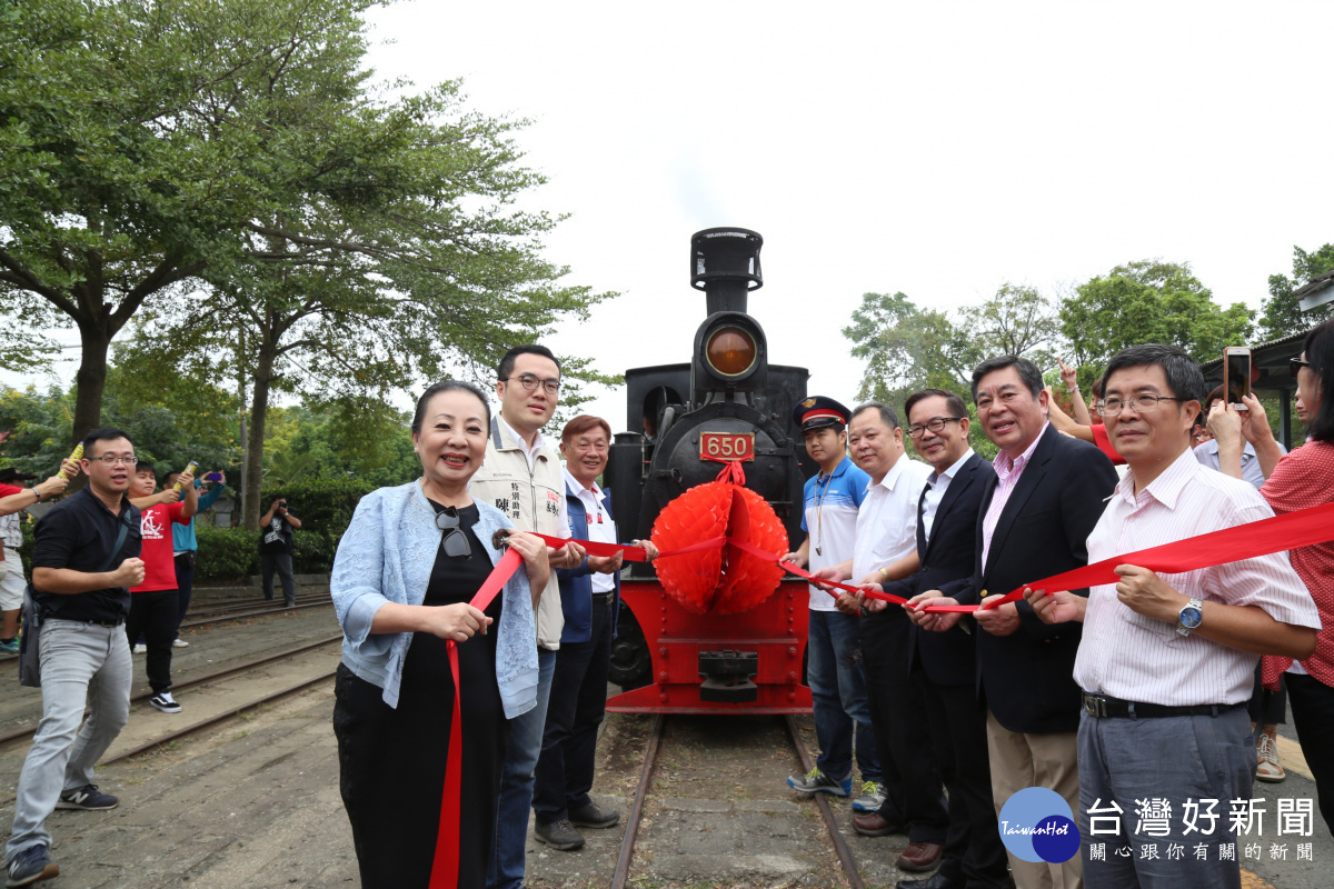 圖說:張縣長、伊藤先生和地方各界主持蒸汽火車復駛儀式 耗資950萬元修復、編號6…