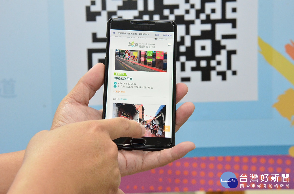 彰化旅遊網全新改版,民眾利用智慧型手機掃描QRcode即可上。圖/記者鄧富珍攝 …