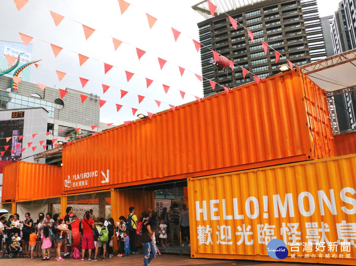 市民廣場化身為充滿怪獸的童趣樂園,特別以貨櫃屋營造出一個適合小朋友玩耍、學習的空…
