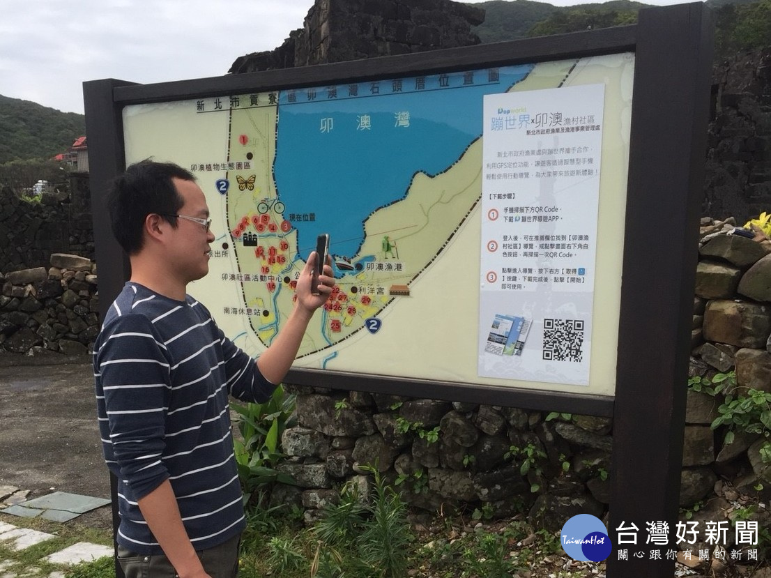 新北為營造親海環境,在貢寮區卯澳漁村的11處景點設置行動導覽服務,讓遊客只需以手…