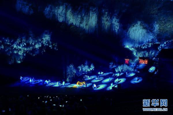 演員在《印象武隆》實景演出中表演(3月12日攝)。 3月12日晚,新版大…